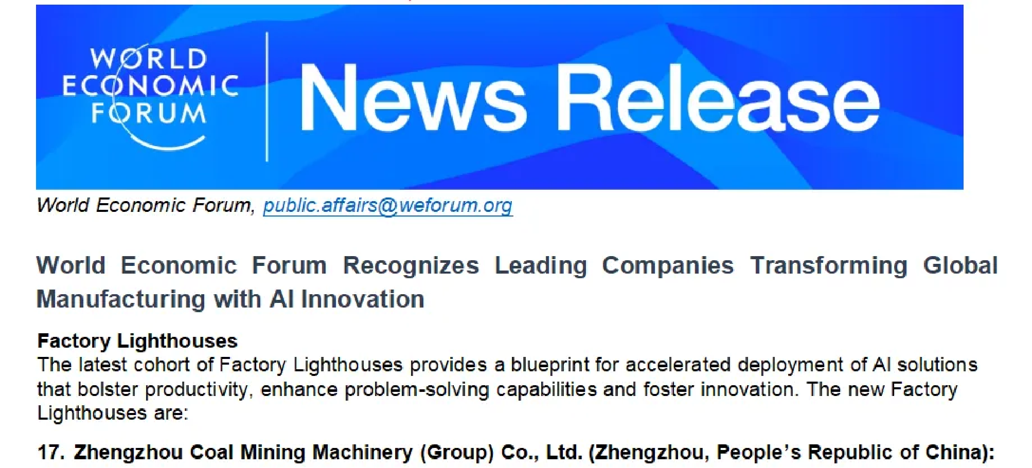 10月8日,世界经济论坛(WEF)正式发布新一期全球制造业领域“灯塔工厂”名单,郑煤机智慧园区成功入选,成为全球煤机行业首家“灯塔工厂”。