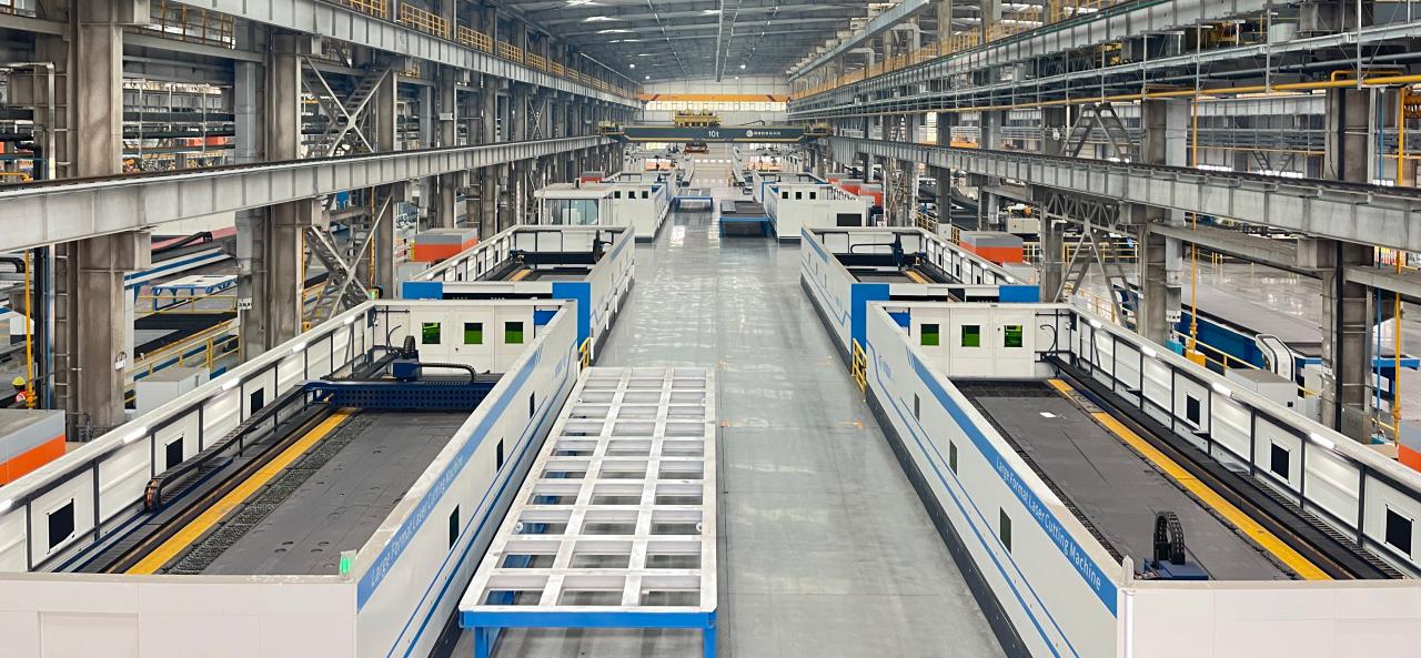 郑煤机智慧园区车间内高效运转的14台高速高功率光纤激光切割机,组成了行业内最大的激光切割机群。
